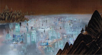 李二男以錄像手法,融合古典美學與當代藝術視角,銜接東西文化的創作思維,揭示藝術發展的新突破。獲得了雕塑及美術碩士學位,李二男持續專研視覺傳播,思索如何跨越物質與無形的意識界線。他積極迎向自我挑戰,跳脫傳統媒材限制,超越美術館的高牆。有了新興科技輔助,他站上藝術史巨人的肩膀,取材於經典,二度創作大師的作品。跨越時空的限制,《新一斷髮嶺望金剛山》,是他連結過去與未來的對話,烏紗帽仕紳與仕女悄悄搭上山中的電動纜車,煙霧山水漸漸隨光影流動,浮現世界各處的地標和飛船。古代文人的清雅情治,如東風般吹進了電視畫面。作品風格充滿莞爾一笑的趣味性與寓意,令觀者愉悅且過目不忘。李二男讓經典藝術也充滿當代的思維,貼近更多觀賞者。隱身在動畫影像的表達,李二男傳達了藝術無界限,擁抱觀者的精神。