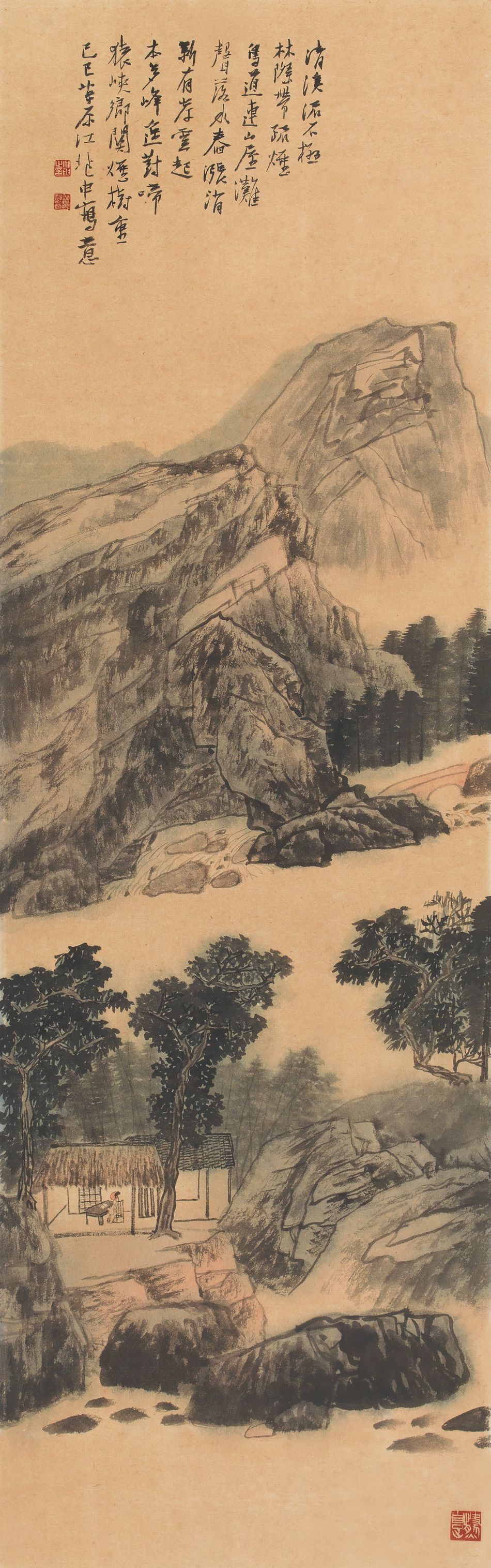 釋文:清溪流不極,林際帶疏鐘。鳥道連山屋,灘聲落水春。漲消新有岸,雲起本多峰。愁對猿啼峽,鄉關煙樹重。