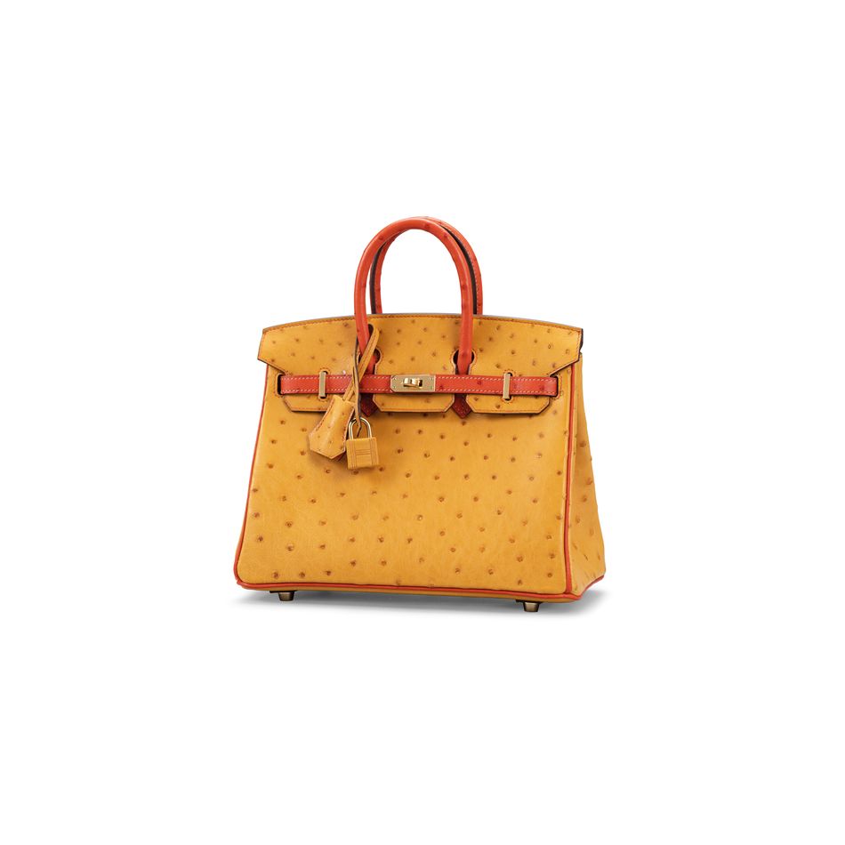 特別訂製琥珀黃色及橘色OSTRICH鴕鳥皮25公分柏金包附金色金屬配件