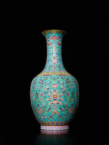 清道光 粉彩綠地描金纏枝番蓮紋瓶