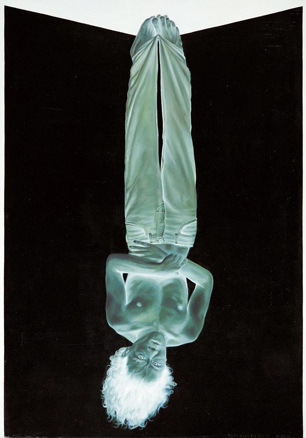 Titled on the reverse melihat sesuatu yang terbolik in Indonesian, size 200 x 140 x 5 cm, dated 2005, signed Gat minyak BUDI KUSTARTO