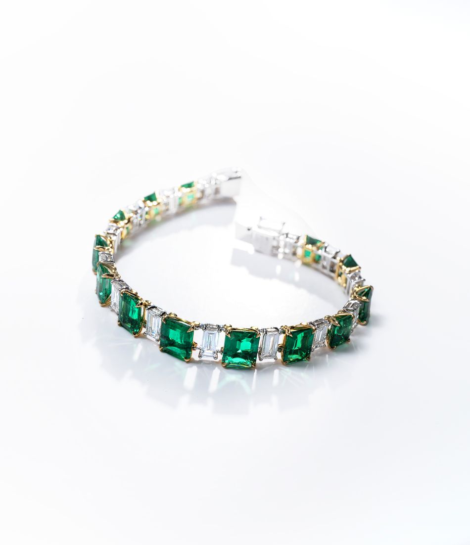 總重18.04克拉祖母綠形哥倫比亞祖母綠配鑽石手鍊,無浸油,附AGL證書
