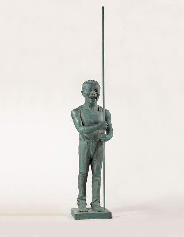 岳敏君說道︰「它對應了秦始皇的兵馬俑,產生了對歷史的反諷和幽默。所有的雕塑形象應用我一貫的作風以我自己為模特,表現自我成為偶像,通過的是不斷重複和大量生產,量的增加能夠產生質的飛躍。同時,能噴發出巨大的能量。尤其是這些傻呼呼的沒有頭腦的傻笑人,在視覺上具有很強的破壞力量,這些人同時也是容易被驅使和容易上當的人。但我並不是一個悲觀的人,我只是對生活採取一種無奈和放棄的態度。這些傻笑人有他們自身的問題,(這些問題是我的問題的放大),同時他們也是富有情感的人,他們是活著的人,他們深深的感覺到了什麼,所以大笑不止。」(摘錄藝術家創作自述)