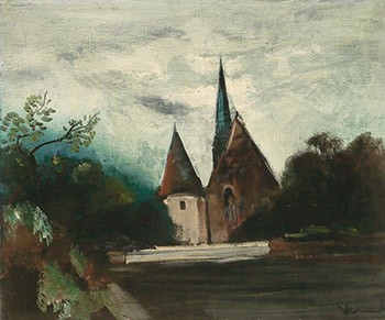 此拍品以高超手法展现形式之凝炼,引人入胜,令人难以移开目光,藉左方树丛引导视觉顺其方向望向中央教堂,邀请观者思索教堂整齐的矩形、拱形窗户后面藏着什么。乌拉曼克显然不断探索风景画的各领域,因此从许多作品中可见到他于艺术生涯各阶段某时某刻醉心不同艺术,当时的现实状况或内在情绪皆倾注于画作之中。本拍品和他受梵谷作品启发而创作的野兽派绘画大相径庭。一直到1908年以前乌拉曼克一向大力推崇梵谷,之后在某次展出见到塞尚的作品受其影响并加以唱和,从此用色渐趋单一。接触塞尚作品为乌拉曼克艺术生涯的转折点,此段时期十分多产,后于1909年举办大型个展,成果丰硕。一战期间法国的现代艺术渐由野兽派转为立体派,由乌拉曼克此时期的创作,可看出身处巴黎的他对此难以接受。乌拉曼克本质上追求的是像马蒂斯(Henri Matisse)、德安(André Derain)那般超越流派,同时又保有个人独特、恣意挥洒颜料的作法。《村庄小教堂》这幅作品着实不凡,优雅满溢着乌拉曼克强烈的个人特质。