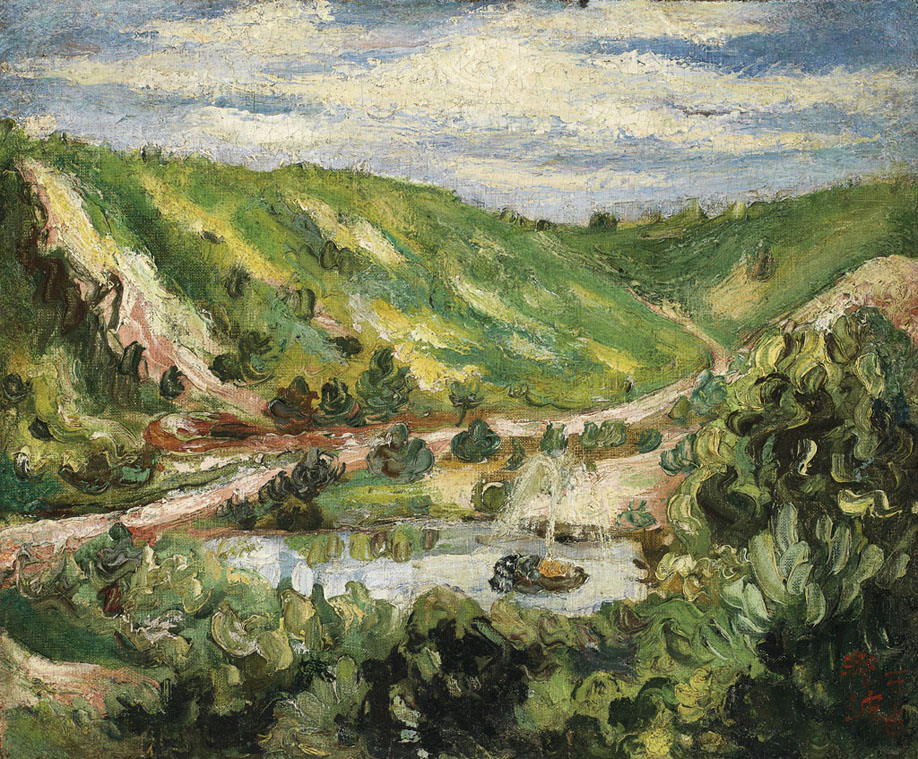 《太湖》作品仍帶有濃厚的後印象派風格,山景色彩層次分別,極富生命力;近景以墨綠色勾勒樹梢,厚塗的油彩突顯大自然豐富的色階變化:而明亮的藍天與鳥瞰的湖水,光影變化相映成趣,整幅作品顯示藝術家的熱情進取及旺盛生命力的性格,也將1930年代富饒的中國江南水鄉景象盡現無遺。