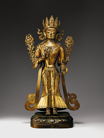 是件彌勒立像造型華偉,細部裝飾細美纖麗,是十八世紀彌勒立像中難得一見的箇中精品。