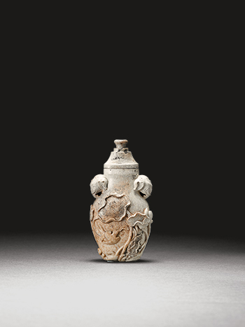 是件蓋瓶從器型上追索有「太平有象」的吉祥寓意,而瓶身紋飾則有「海清河晏」的祥瑞意蘊,是一件設計巧妙的案頭雅玩。