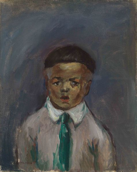 戴绿领带的小男孩
