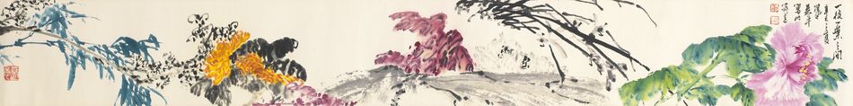 (一)辛巳長夏,寫四季花成卷並署六字為引首,堪白吳平。