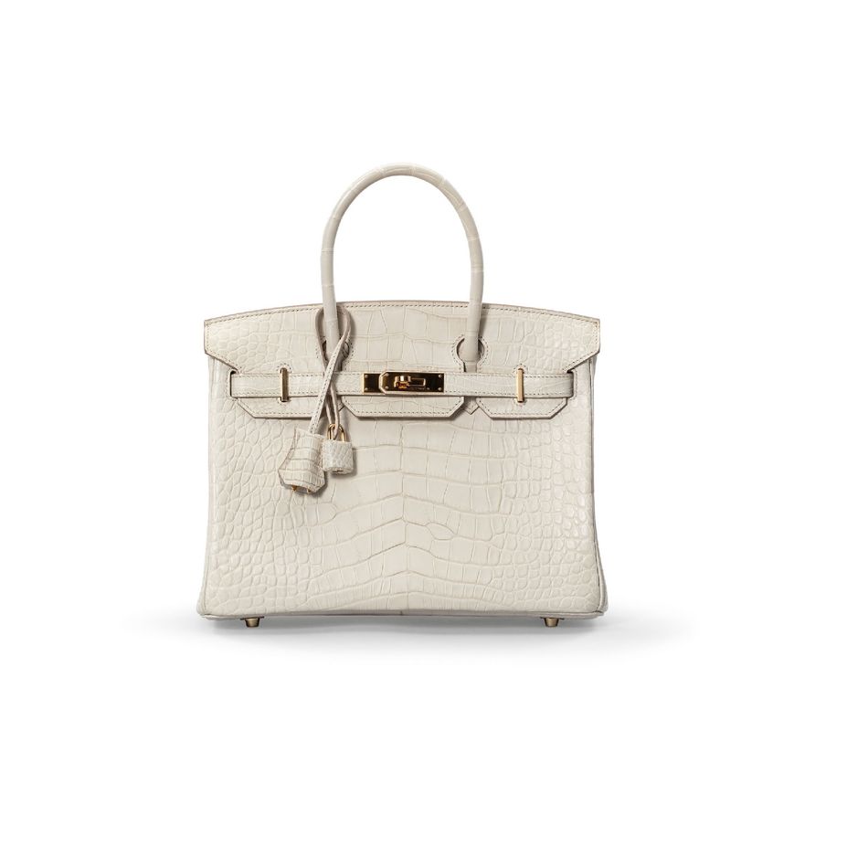 霧面冰川白色ALLIGATOR短吻鱷魚皮30公分柏金包附金色金屬配件