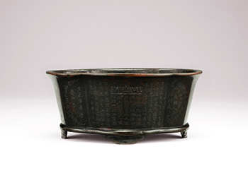 明代 銅「日利千金」海棠式四矮足爐