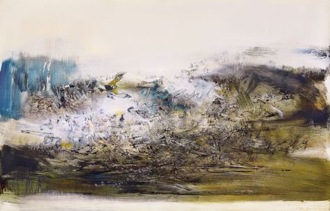 趙無極的本名,「無極」兩字取自道教思想,最早出自於老子《道德經》中以無極稱道表宇宙萬物之恆。身為最具影響力的華人藝術家之一,趙無極擅長以西方抽象表現型式體現東方道家哲學思維。他歷經歷史動盪、文化流動,各個時期畫作轉折豐富。從最早的具象時期、克利式的圖像引領至東方本質的抒情抽象,趙無極透過對宇宙萬物、人生經歷等細微的想像與感受,形成東西方藝術概念詮釋的完美精萃。1970年趙無極的首部傳記在法國正式出版,這項消息標誌 出畫家的藝術成就已獲得肯定。在此之前,法國電視台剛剛 於1969年製播了趙無極的藝術專輯,受日本國立現代美術 館邀請舉辦展覽,加拿大蒙特婁當代美術館亦剛剛舉辦生平 的第二次回顧展,此間各地的展覽邀約不斷。趙無極認為從 1960到1970年十年間的創作已見到具體的成果。而許多藝 術評論家也對趙無極1960年代的抽象畫給予佳評,他的知 名度達到前所未有的佳境。趙無極融合了中西藝術精粹,他的藝術無論就東西方藝評 家的觀點,皆能認可他不凡的才情。而一位在國際藝壇 能享盛譽的藝術家,他的成功絕非僥倖,偶然。此幅油畫 《30.11.67》完成於1967年秋冬之交,此時趙無極在巴黎 發展已近20年,個人風格已然成熟確立。該作品雖是抽象 畫,然而就其採用的色彩與構成形制來看,令人聯想起大自 然的景色-江海的聯想。近景刷過深棕色,其中層層疊加不 同的色調:墨綠、深藍、淡紫、粉紅,富有變化感,交錯著 許多纖細的線條,表達著畫家深藏內在的情緒。左方的藍 色,成為整幅畫的視覺焦點,提示出那彷若海洋的象徵,大 面積的粉白色像是捲起的海浪,與深棕色相互輝映,一柔一 剛,陰陽調和。畫家運用熟練的色彩鋪陳,細膩而有節奏性 的組合,使觀者欣賞之餘,彷彿聆聽潮音迴盪,予人開闊悠 遠之感,此畫為趙無極1960年代少有的寧靜之作。