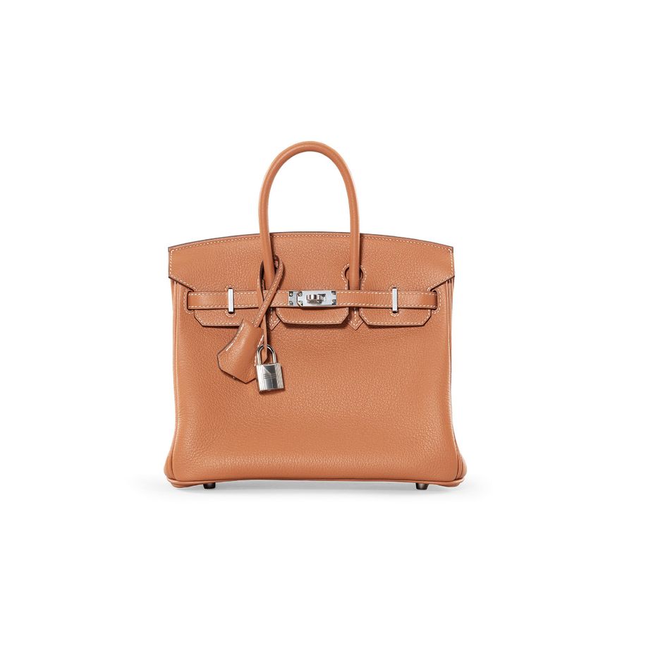 駝色NOVILLO牛皮25公分柏金包附銀色金屬配件