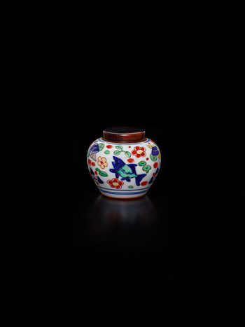 明萬曆 五彩魚藻紋小罐