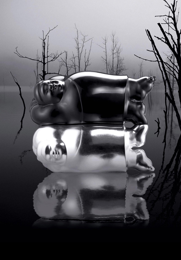 "Clear Soul", created in 2002 by Li Chen, is part of his series "Spiritual Journey through the Great Ether". The sculpture exclusively adopts a silvering material and creates a mirror-like inverting effect. "Clear Soul" figuratively suggests that only a pure and spotless soul, such as that of a newborn baby, may freely fly over the serene and clear lake. The infant-like "Clear Soul" actually means freedom from desires or demands, negating mortal emotions or desires, complying with the rules of nature, and facing and enjoy life with the most genuine attitude. "Clear Soul" seems as if a mind of concerns has seemingly cast off the concerns of mortal toil; it is substantial but feels weightless. Life is real and yet full of illusions, which are doomed to vanish as time goes by. This philosophy can be compared to a mirror-like inverting effect. Pure and spotless "Clear Soul", which is the boundary of Buddhism, will enjoy the freedom of flying over the serene and clear lake. The viewer thoroughly tasting Li Chen's works, will be touched by his "trueness", which, as if that of a newborn baby, has already been accidentally revealed by his own name (The Chinese character "真(Chen)" means "true") There are no over-complicated lines, and the perfectly round and unsophisticated image or figures always result in understanding smiles in observers. The simple design contains integrated flavor and natural beauty, and presents a visual impact beyond time and space. "Clear Soul" is one of Li Chen's magnum opus that reflects his higher pursuit of art.