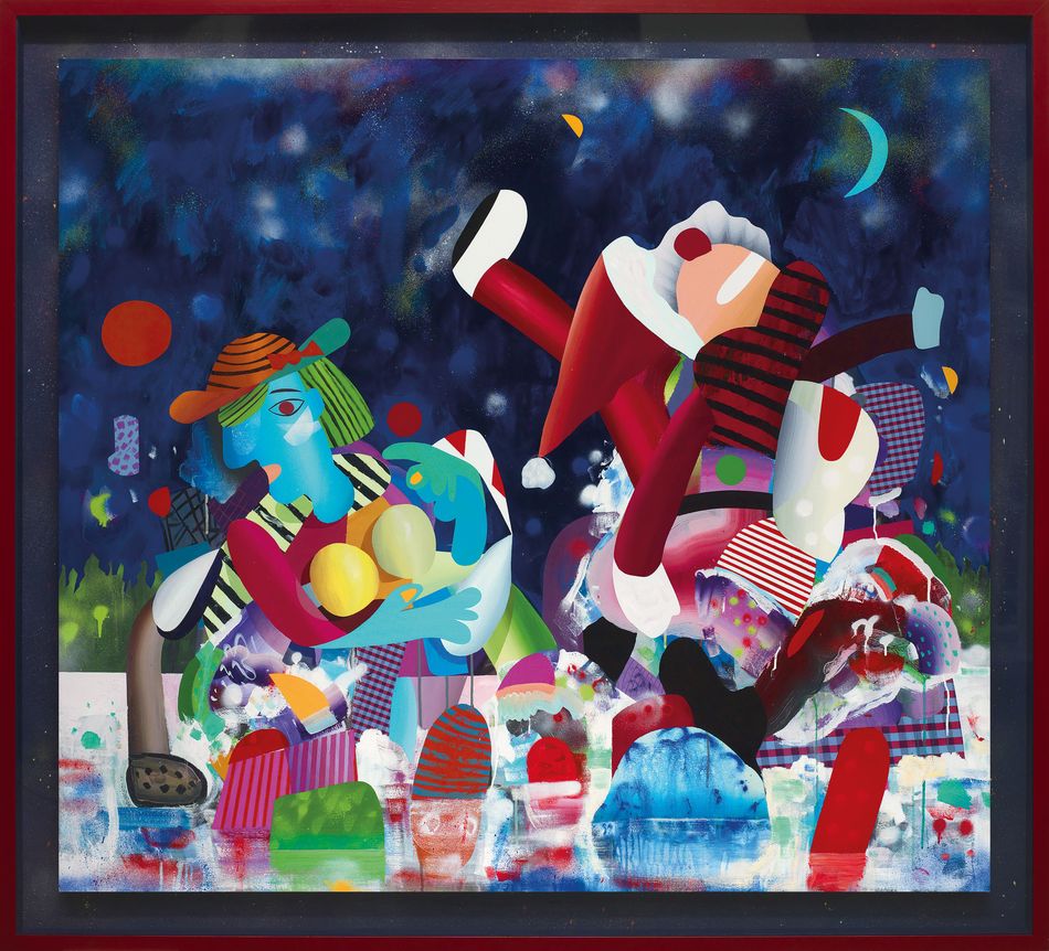 Signed reverse Tom Berenz, titled Picasso and Santa and dated 2016