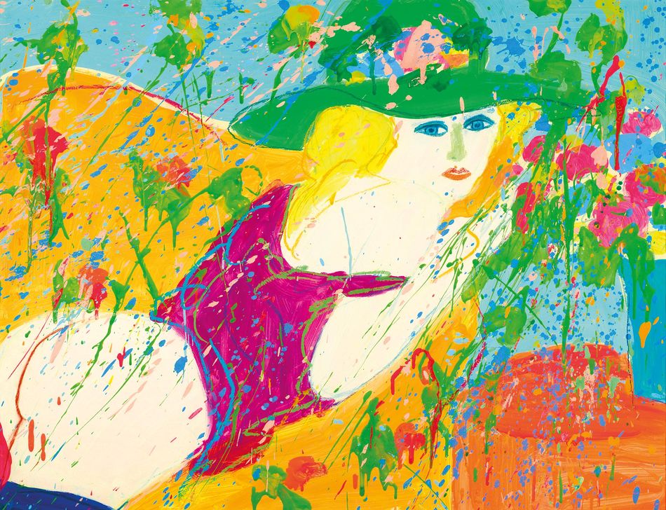 二十世紀的1970年代起,旅居紐約已超過十年的丁雄泉匯集了巨大的創作能量,畫風從抽象藝術轉變至具象繪畫,而他最多的情感與創作則都留給了他畢生鍾愛的主題─「女人」;在紐約的丁雄泉發展了筆觸濃烈狂野,用色強烈不拘帶點驕傲與放縱不羈;這縱然與丁氏天性有關,而在藝術氛圍大放,自由且充滿未來感的紐約更是引領著他日後風格的確立。《親我親我》大膽利落的線條勾勒,手法流暢帶點不羈的狂野自信,宛若野獸派的灑脫奔放,而其畫中女人慵懶不扭捏,泰若自如地呈現女性姿態的優美;背景充滿力道的顏料潑灑、滴流等抽象表現主義的影子融合高彩度的色塊塗抹,則迸發出藝術家旺盛的創作能量以及川流不息的生命力。