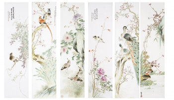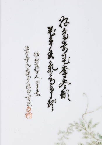 晚清 粉彩花鳥圖瓷屏風