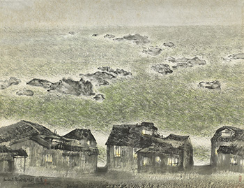 題識左下:晨海濤聲何懷碩於澀盦鈐印右下:澀盦鈐印左下:何、懷碩