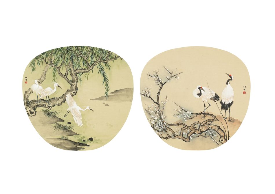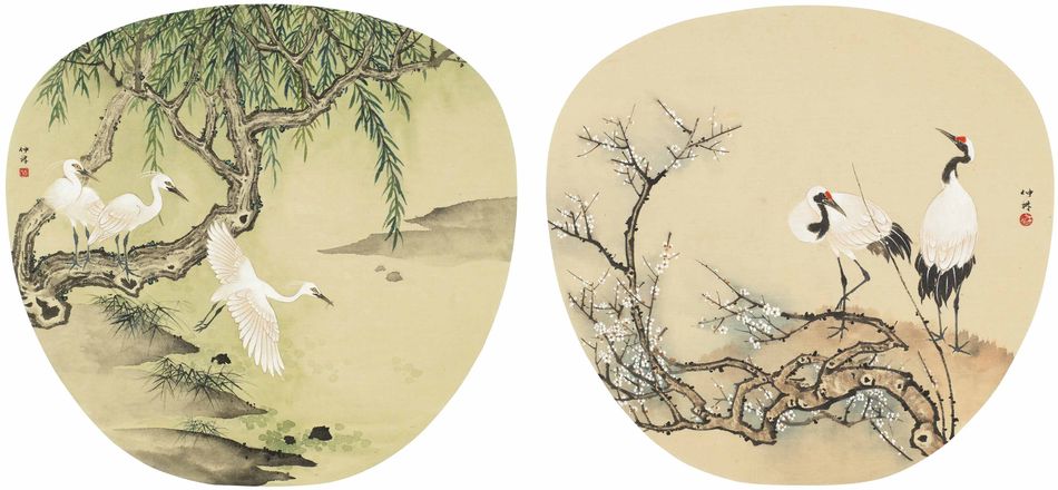 Egrets on the Willow Tree and Red-crowned Cranes and Plum Blossoms (A Set of Two)