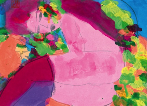 裸女、花朵與貓