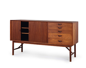 此雙人設計師於1944年在丹麥哥本哈根創立了維特&莫嘉德設計與建築事務所。著重在丹麥傢俱的前衛與創新設計以及致力於設計出經濟且易於運輸的家居創作。原型-309捲門邊櫃為此雙人組設計師邊櫃系列中最為典型的代表設計,兩人深厚的建築背景使得該件創作帶有強烈的建築美感,幾何極簡的線條,除去繁雜花俏的裝飾,讓創作本身成為主角。此件邊櫃帶有濃厚的現代主義建築內涵,將原本工藝造形藝術提升至建築美學之列。