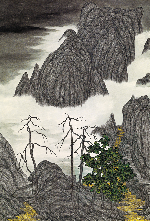忘德賦─合歡煙雲(臨董源《洞天山堂》)