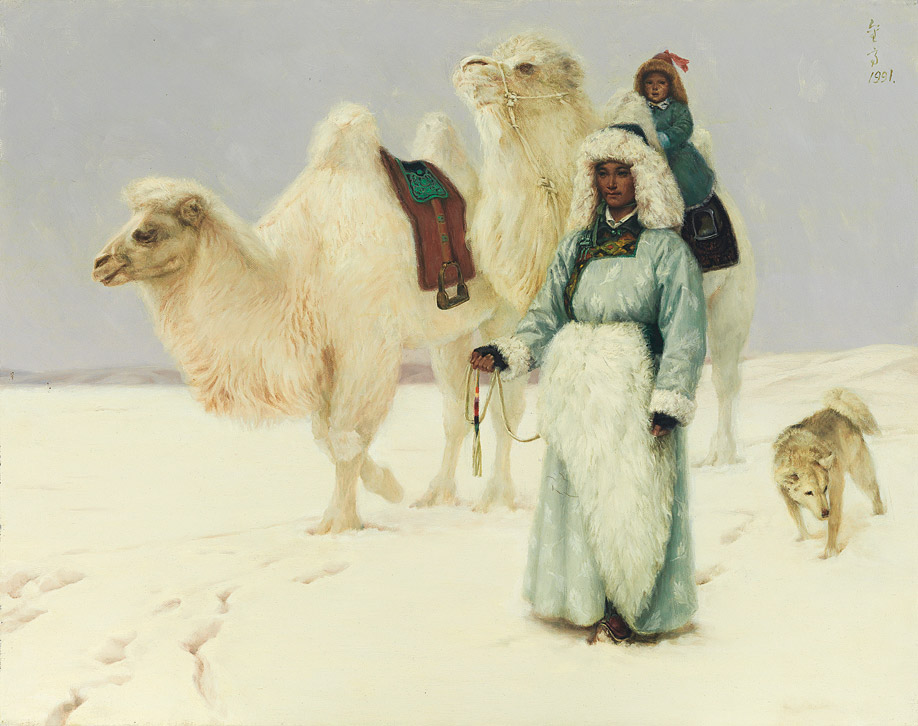 签名画背:JIN GAO A Timely Snow Brings a Good Harvest Oil on linen 1991