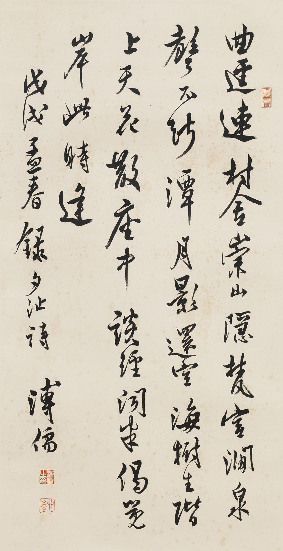 款識:戊戌孟春錄夕沚詩,溥儒。