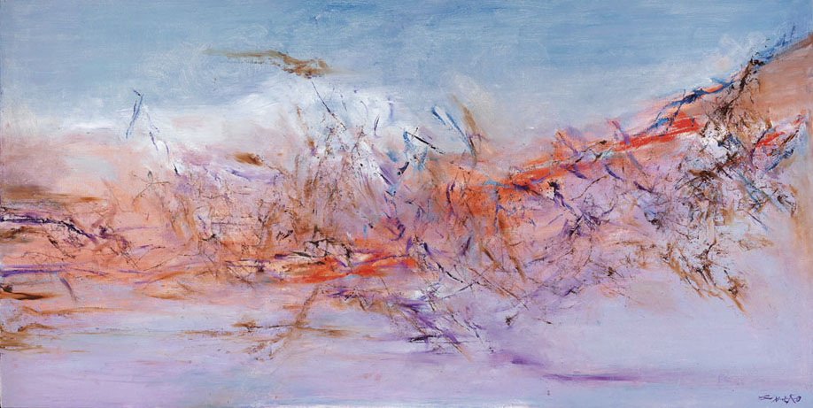 旅居法國的趙無極一開始的繪畫是屬於西方的,漸漸地向歸中國,早期畫面的構成緊密,後期作品則較為空靈。他過去認為,畫滿是容易的,畫空則要困難許多。而一生幾乎奉獻給藝術,趙無極對於媒材的運用熟練,已能隨心所欲,達到「反虛入渾」、「氣韻生動」的境界。在追求太虛畫境的漫長過程裡,他早已簡化了畫面上的中法文簽名,將空間留給色彩與構成,筆隨心意遊走,或疾或徐,舒緩自在,無處不顯繪畫大師的瀟灑氣度。