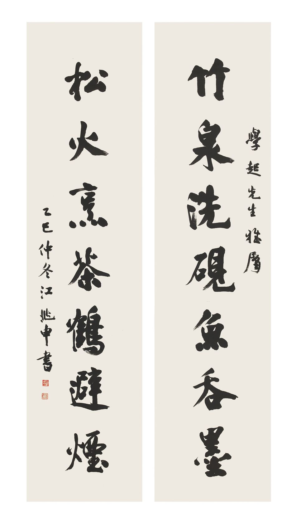 釋文:竹泉洗硯魚吞墨,松火烹茶鶴避煙。