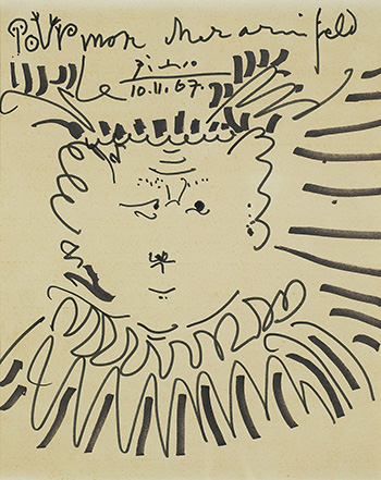 Signed upper center Picasso , dated 10.11.67 and dedicated Pour mon cher ami Feld (Reine)