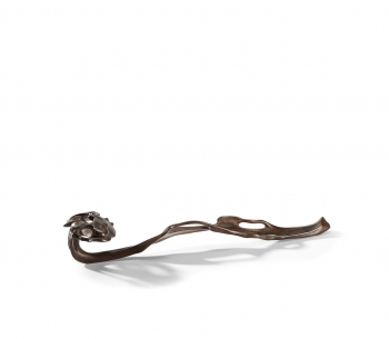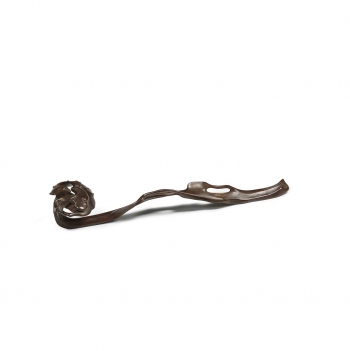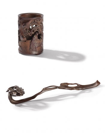 The scepter naturalistically worked in imitation of a stem of lingzhi fungus with an auspicious ruyi-shaped terminal, the wood of a rich caramel tone.