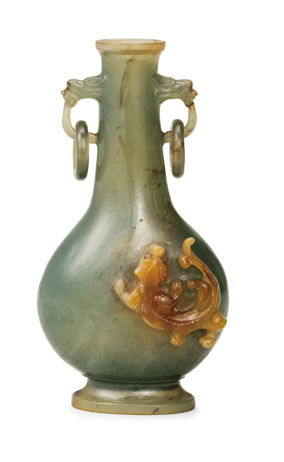 清 雙耳鋪首銜環螭龍翠玉瓶