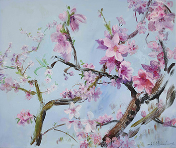 周春芽是中國當代公認的傑出藝術家,從最初的藏族題材,到早期1990年代時期因留學德國,創作受到新表現主義繪畫影響,大膽用色且奔放,如同他的「綠狗」系列,周春芽都有著階段性的成長與突破自我。到了1990年代中期,周春芽逐漸遠離新表現主義的影子,將旅居在外所見所聞內化之後,同時,透過研究中國文人畫的精神,透過古典審美觀和新的表現方式激盪出新的思維,挑戰新的表現方式走出自我。從「山石」系列,再到了近期的「桃花」系列,周春芽借助新的技巧重新詮釋傳統中國山石花卉的繪畫,與傳統對話。
