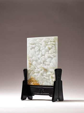 清乾隆 青白玉雕山水閣樓暨御製詩插屏