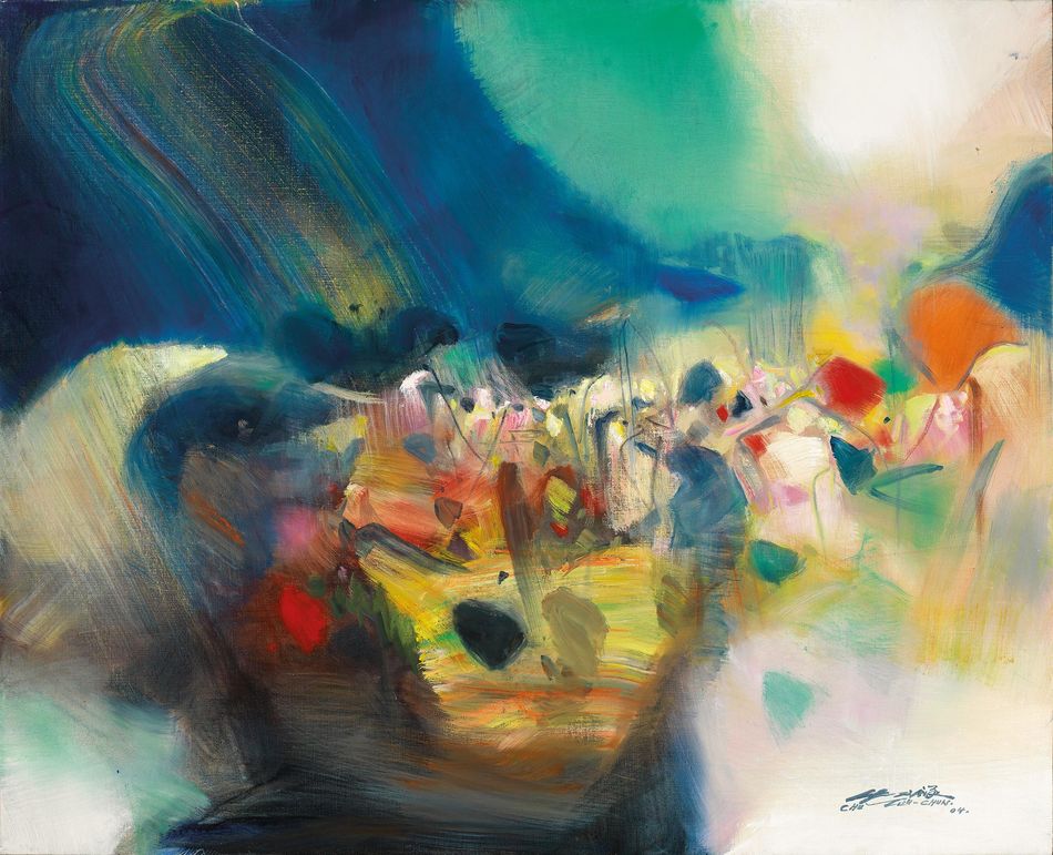 As a renowned Chinese artist of the 20th century, Chu Teh-Chun opened up a vibrant chapter of art history with his unique lyric abstract paintings. In his youth in China, he established a solid background in Eastern culture. The years he spent studying in the Hangzhou School of Art (now the China Academy of Art) were turbulent, with the school moving constantly due to the War. Yet it was through his difficult education that he was able to see China’s magnificent mountains and rivers, cultivating the embrace of nature that would be seen in his future works. He lived in Taiwan for a few years in his late 30s, and then moved to Paris, France in 1955. There, he developed his mature style of lyric abstract art . He steadily found fame in Europe, followed by praise and followers in Asia, the Americas, and the rest of the world. Chu Teh-Chun found the liberating language of abstract art in the retrospective exhibition of Nicholas de Stael (1914-1955); learned the art of complementing light and shadow from the masterpieces of Rembrandt Harmenszoon van Rijn (1602-1669); and captured the essence of structuring paintings with precision and dynamics from the work of Paul Cézanne (1839-1906). On the other hand, though he lived in faraway Europe, Chu Teh-Chun never stopped the self-cultivation of Chinese poetry and calligraphy. He always highly valued and studied Chinese ink wash paintings, especially the landscape paintings of the Tang and Song Dynasties. The artist took nourishment from both Eastern and Western culture. Through years of continual honing, he forged his own superb abstract language, finally emerging as a great artist.