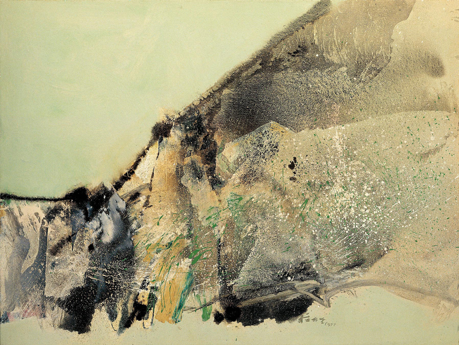 莊喆在《霧淞》一作中,以落筆快速、紋理優雅的瀟灑筆觸建立霜霧紛飛、獨立蒼茫的清明氣象,明亮濃郁的色調則在萬千紛擾中凝聚一股祥和。在蒼勁或輕盈的敷抹揉合中,點點綴出飄落霜雪的瑟瑟草木,完美交渾人與自然的有機生命。純然的霜,蒼然的林,純然與青翠的無盡延長,直向那無盡的視野蔓延而去,令人有著無限想像空間。而畫家帶有中國書畫的豪放與輕巧,來回穿梭於畫面中央,用色兼容沈穩奔放,雄渾中又不失靈動婉約,在中國東方雅致詩意的氣質中重新詮釋自然與人文的和諧並存之美。