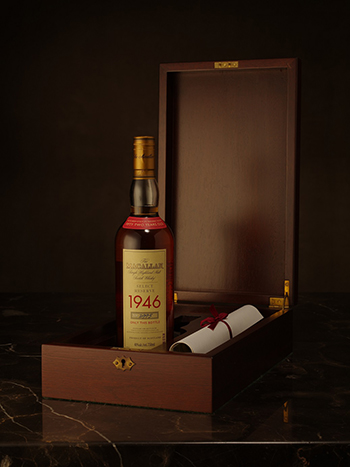 Macallan 1946為麥卡倫於二次大戰後蒸餾的酒款,1998年才正式裝瓶上市,52年的木桶熟成帶給這款酒沉穩深邃的氣質;有趣的是,由於戰後煤炭昂貴,酒廠改以較高比例的泥煤燻烤麥芽,讓此款酒帶著麥卡倫少有的泥煤風情。濃郁的煙燻氣息、絲綢般柔順的口感、平衡的甜美,餘韻綿長,是麥卡倫酒廠的經典收藏酒款之一。