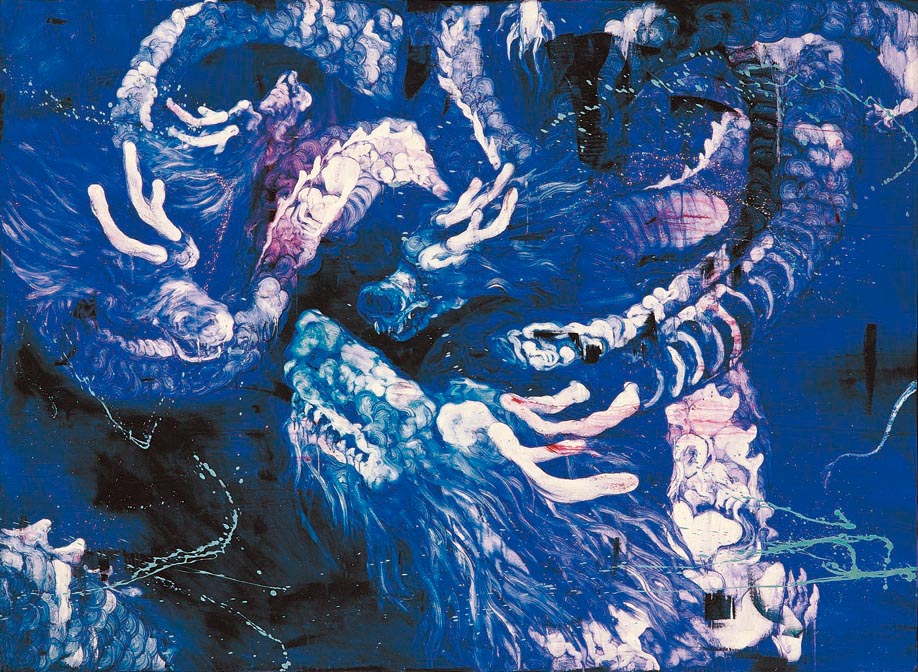 作品《肉花鳥.龍昇圖》藉由龍的形象與創作的居間性為主軸,轉而探討、反思個人繪畫創作中的身分認同議題。透過遠古傳說中的聖獸,轉化形式變成語彙上的居間性意象,拓展個人在繪畫上的精神層面探究。常陵的「五花肉系列」企圖詮釋與建構出介於西方與東方藝術板塊交會、摩擦下併發出屬於台灣當代藝術的文化、身份、認同的境遇,及個人文化記憶底層下混雜曖昧的原鄉情懷。