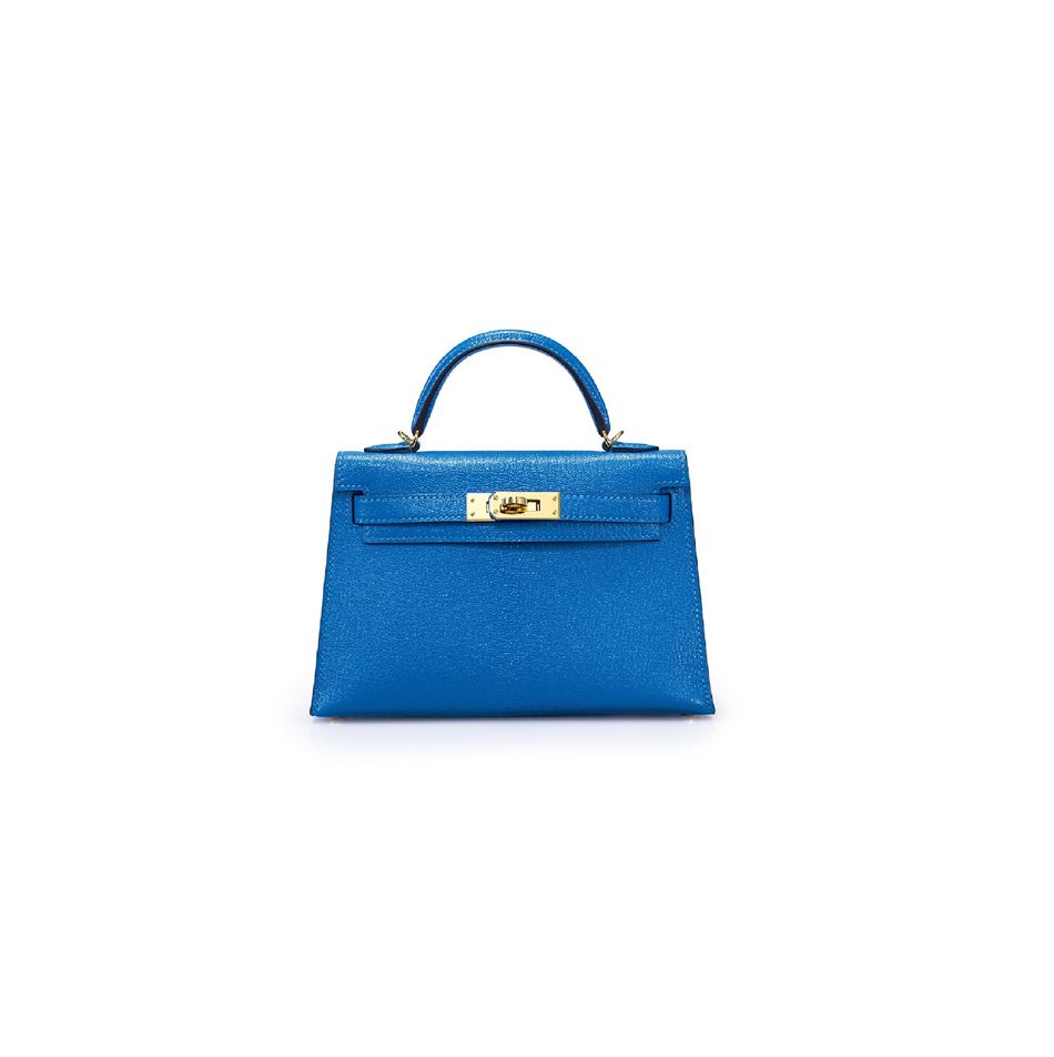 水藍色CHÈVRE 山羊皮20公分迷你凱莉包二代附金色金屬配件