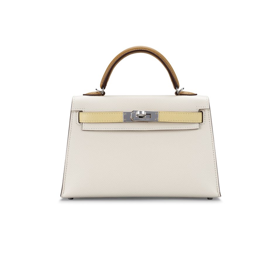 限量版奶油白色、小雞黃色及芝麻色EPSOM牛皮20公分迷你凱莉包二代附銀色金屬配件