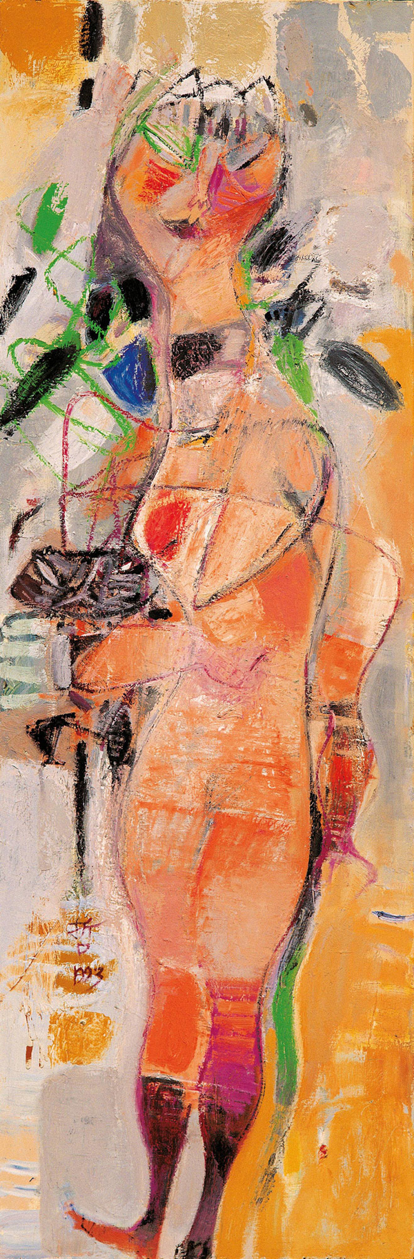 Titled on the reverse Woman in Chinese, size 50F 180 x 60, signed Che in Chinese and dated 1993