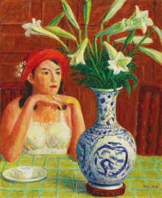 Girl and Lily, painted by Li in 1982, is one of the rarest pieces in his flower series. He unusually combined two themes, the figure and the vase of flowers, into one picture, and also added a vase pad to make a more exquisite composition. This piece of art is the classic Li’s style. The composition is rigorous and solid. The color is organized and precise. The brush strokes are thin and reasonable. The lilies in the vase each has individual postures and characteristics, but unite harmoniously as a whole. This shows Li was good at depicting individual objects while keeping the composition well-balanced. The blooming flowers in the nine-dragon vase, an icon of the emperor, shows magnificent aura. On the other hand, Li also focused on presenting stereopsis of the flowers and the vase with brilliant lighting and coloring. That makes the painting so realistic and provokes the viewers' senses of tactile. Li once stated that "Paintings should not be untouchable. If you draw Venus, you should be able to hug her in your arms". Li Shih-chiao's insights, persistence and critical thinking in painting opens a new pathway of Taiwanese art history.
