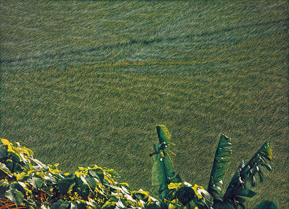 黃銘昌的作品從有時間、地域性的鄉土寫實邁向無時間隔閡的土地延伸,從室內生活空間的真虛搜索到窗外欄杆線外廣大的宏觀與細膩的微觀,畫家以個人的視宇舖陳出繽紛密密萬物歸懷的物我繾綣之情。歸國後的「稻田系列」與「遠眺系列」,大同小異地覆述著靜純樸世界的眷戀,他的鄉土寫實不再是攝影鏡頭獵取下的切面空間,而是透過細緻描繪與嚴謹結構組合出的鄉土意象,一吋吋貂毛筆所犁過的畫布,似乎意欲攫取住每一吋畫面所能擁有的寂靜,似幻似真地抗拒了外來世界的侵擾。他的稻秧正如家鄉「瑞穗」知名,常年豐盛的成為記憶版圖上的烙記,是一株株已在現實中逐漸消逝的鄉土符號。現實中逝去的,黃銘昌在畫面上挽留了。(節錄自高千惠〈切向七○、八○美術年代〉《中國時報》83年4月14日)