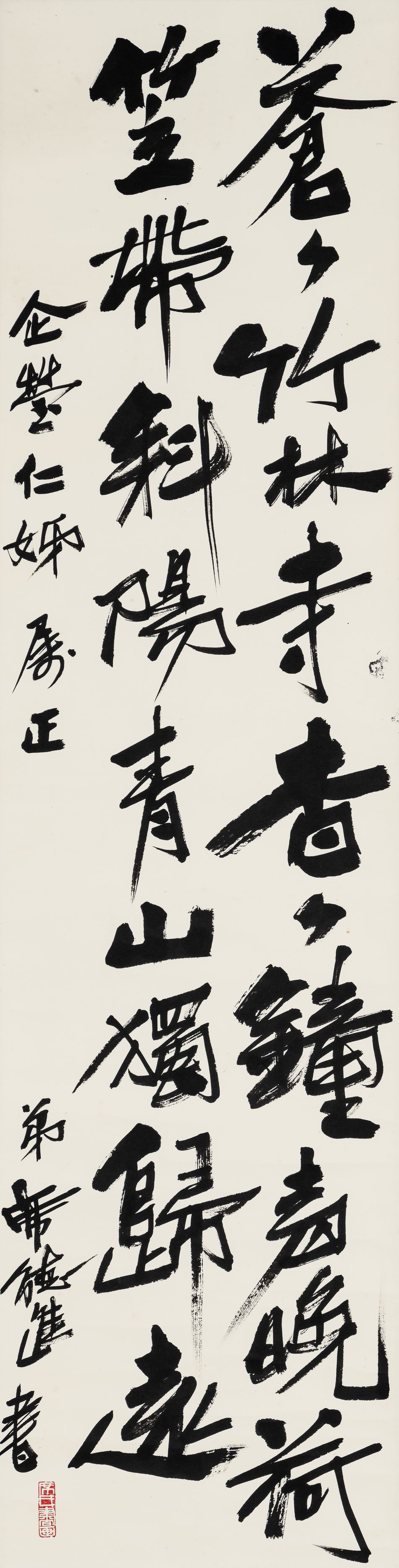 释文:苍苍竹林寺,杳杳钟声晚。荷笠带斜阳,青山独归远。