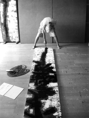 As fluent as floating cloud and running water, the three scrolls of "Flying Apsaras" carry the oriental feelings and have the form of abstractive expressionism. However, aren't the collapsed furniture and broken window decorations and paper cuttings hidden in black brush strokes bearing the artist's pursuit to classical cultures and his sigh with deep feeling thereupon? Su Dongpo, the great poet in Song Dynasty said in his prose: "Live in the ultimate world like a mayfly, and as a millet in the ocean as tiny, we bemoan what a short life we are leading, and envy the Changjiang River's infinite running; how I wish to fly around the universe, hand in hand with the immortals, and to embrace the shiny moon, living and exist endlessly in heaven." The modern artist adds in his works of art more Zen philosophy and wisdom, seeking to learn from the ancestors' free bosom and open mind, and to set people's spirit as free as the flying immortals.
