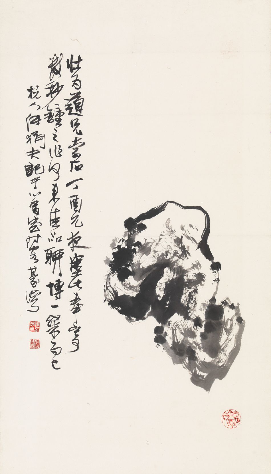 款识:壮为道兄索石,丁酉元夜墨纸奉寄数秒钟之作,可来佳品联博一粲而已。杭人傅狷夫记于心香室时客台湾。