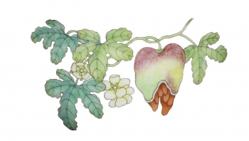 清道光 粉彩過枝癩瓜蝴蝶碗一對 六字篆書款