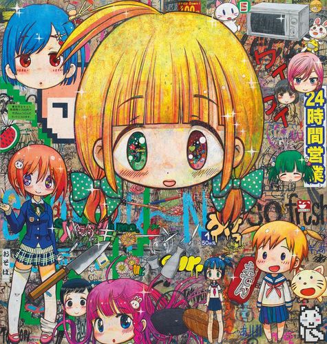 The images exaggerated with otaku created by Mr. has become the focal point in the auction market, different from Takashi Murakami, who famously employed the anime character “Doraemon” as his creative theme, Mr. applies flourishing colors and creates Japanese animated manga character with style that is full of positive energy, his inner desire and fantasy are therefore vividly expressed on his creation. This autumn Ravenel proudly presents his large-scale painting "A Day When Many Dreams Come True" was once exhibited in the Djapa restaurant in Hong Kong. During then, it attracted many art enthusiasts and collectors to visit as pilgrimage. The work is centered on a girl with blonde hair, her big watery eyes and childish face reveal an incomparable innocence, she is also surrounded with other “Moe” young girls commonly seen in animated video games. The core ideology of Mr.'s creation is against representation and reality, the background element of this work presents Japanese mainstream subculture and street culture. Various signboards with slogans as open 24 hours demonstrate the application of the aesthetic style of pop art, evidently displaying his skill when coping with different themes and patterns. The girls with big watery eyes exerted their blooming youth power of “Moe” incisively and vividly, but at the same time is a projection of Mr.’s desire that is totally out of reach, is an imagination that possessed of the ideal of beauty. The work of Mr. shows fantasy moments filling with magic, brimming with boundless enthusiasm and positive energy, fully conveying the youthful, cute and pure of heart Japanese “Moe” spirit. In such an incomplete and troubled real world, opens up a world full of dreams with boundless fantasy and vitality.